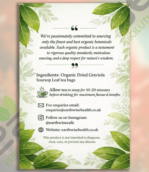 Our Organic Soursop Leaf Tea is made from carefully selected, organically grown Graviola leaves, traditionally used across the Caribbean, Africa, and South America for holistic health and internal balance. The leaves are gently dried to preserve their natural plant compounds, creating a smooth, earthy herbal tea suitable for daily wellness rituals.
